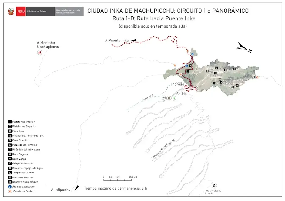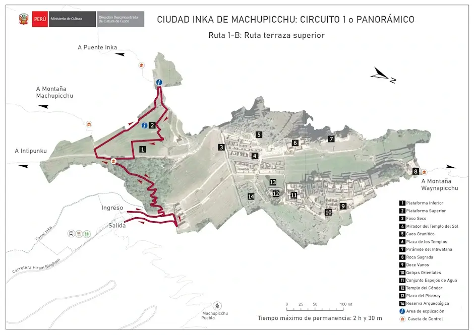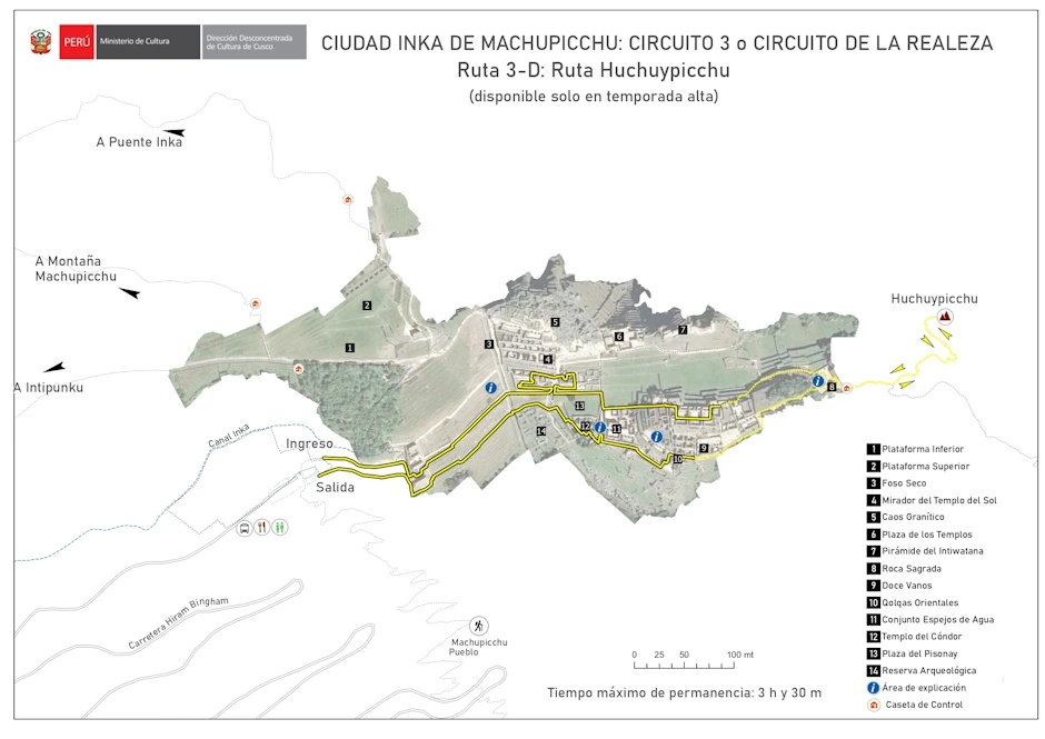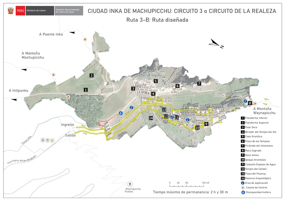 Below are the three official circuit options and their corresponding routes, according to the Ministry of Culture of Peru.