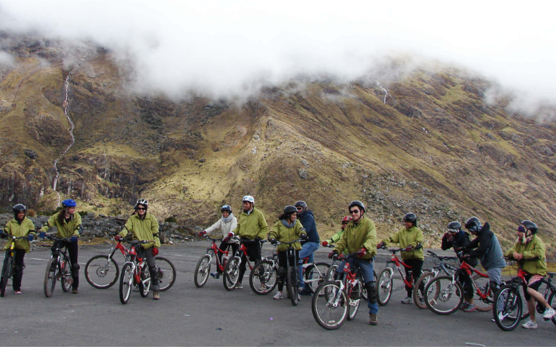 Tras 2 horas de viaje, nos detendremos en la antigua ciudad inca de Ollantaytambo, donde tendrá incluido el desayuno y podrá estirar las piernas y utilizar las instalaciones. Desde allí, continuaremos conduciendo hasta el paso del Abra Málaga, situado a una altitud de 4.350 metros (14.271 pies). Aquí comienza nuestra emocionante aventura de descenso en bicicleta hasta el pueblo de Santa María, situado a 1.430 metros.