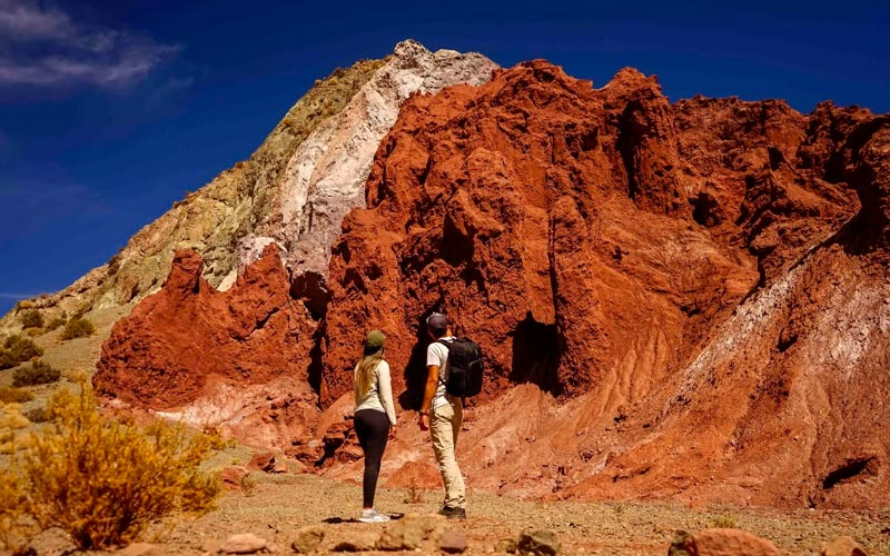 We started very early, where we headed 90 km from San Pedro towards the Rio Grande basin, where we arrived at the Rainbow Valley. Its name is given due to the variety of colors that can be seen on the hills of the valley; earth colors, red, beige, green, white and yellow. All combined with traces of white salt and a blue sky. The colors of this sector show the ecological richness of the clay, minerals and salts. We will visit this place on a walk of 1 hour one way and 1 hour return. Then we will move to the Salado River sector, where a small valley is formed where we can take a walk to appreciate the landscape.